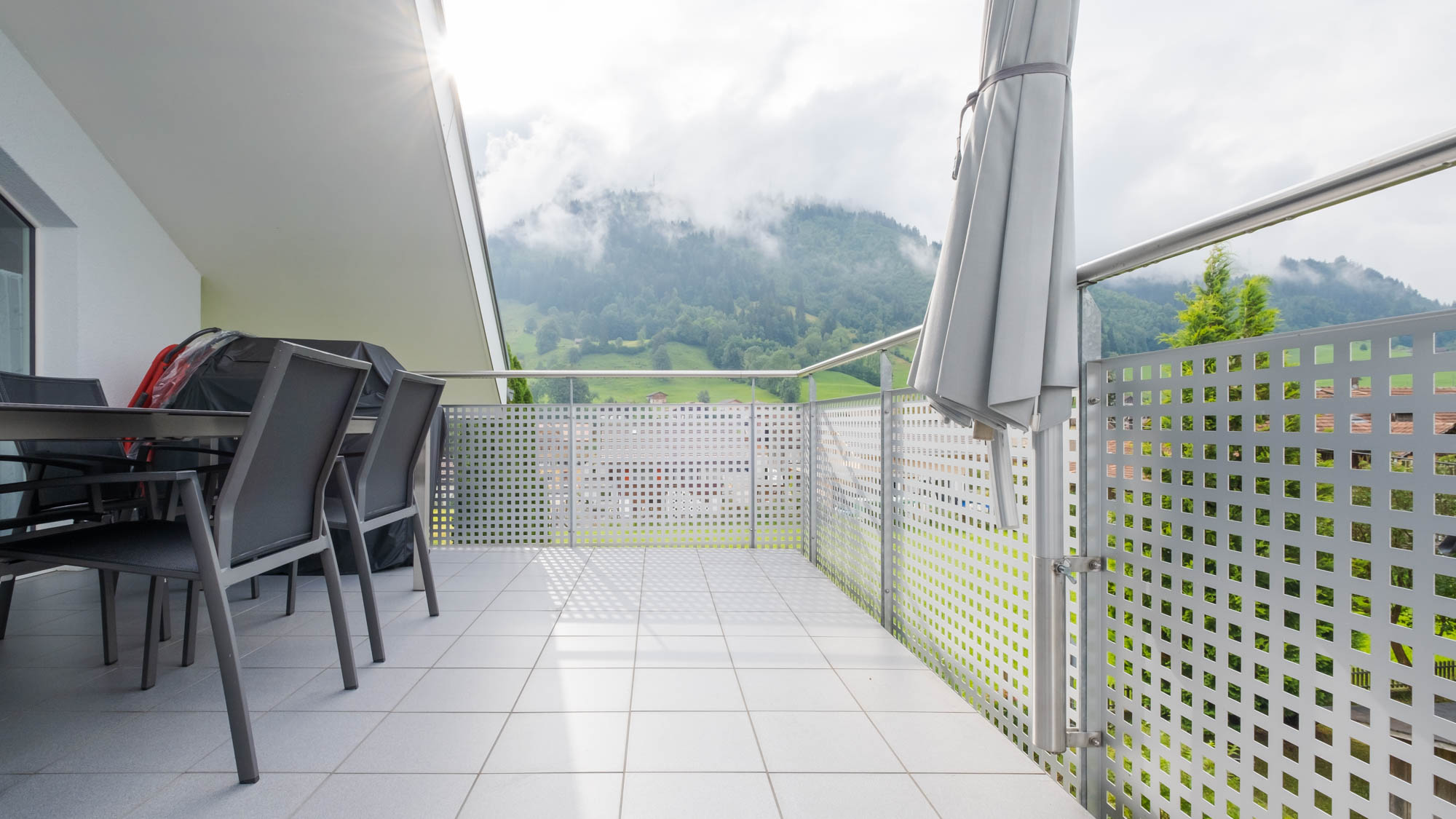 Lochblechgeländer haben einen grossen Vorteil: mit der Dimensionierung der Perforation lässt sich die Transparenz beliebig beeinflussen. Gerade bei Balkonen ist es immer wieder ein optimieren zwischen Durchsicht und Privatsphäre. Eloxierte Lochbleche aus Aluminium wie bei diesem Projekt an der Widigasse in Frutigen sind langlebig und wirtschaftlich, und geben viel Raum für die Gestaltung der Geländer
