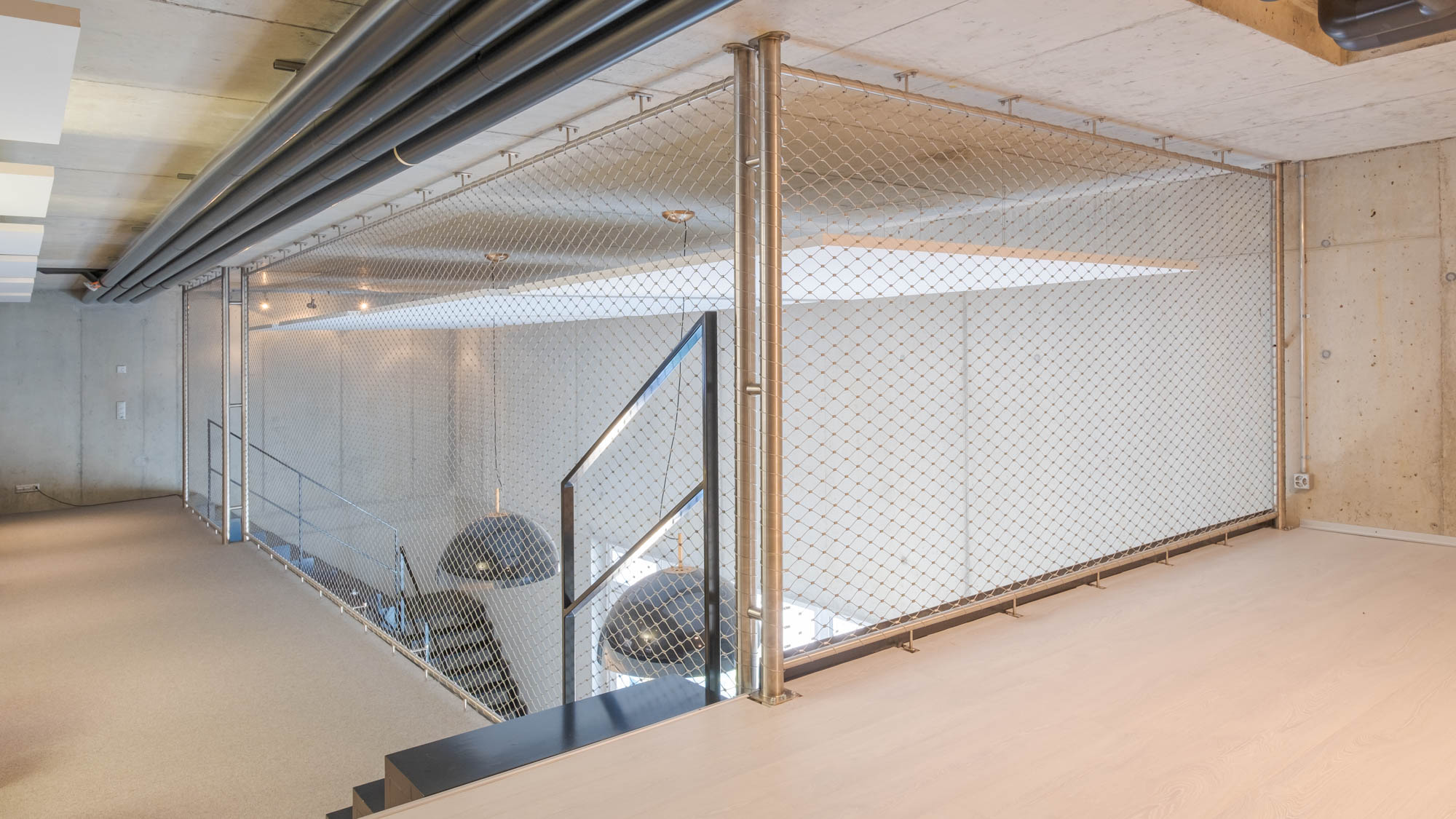 Die Webnet Drahtseilnetze von Jakob eignen sich sehr gut für grosse Abschlüsse. Sie trennen den Raum sicher mit einem Minimum an trennendem Material.