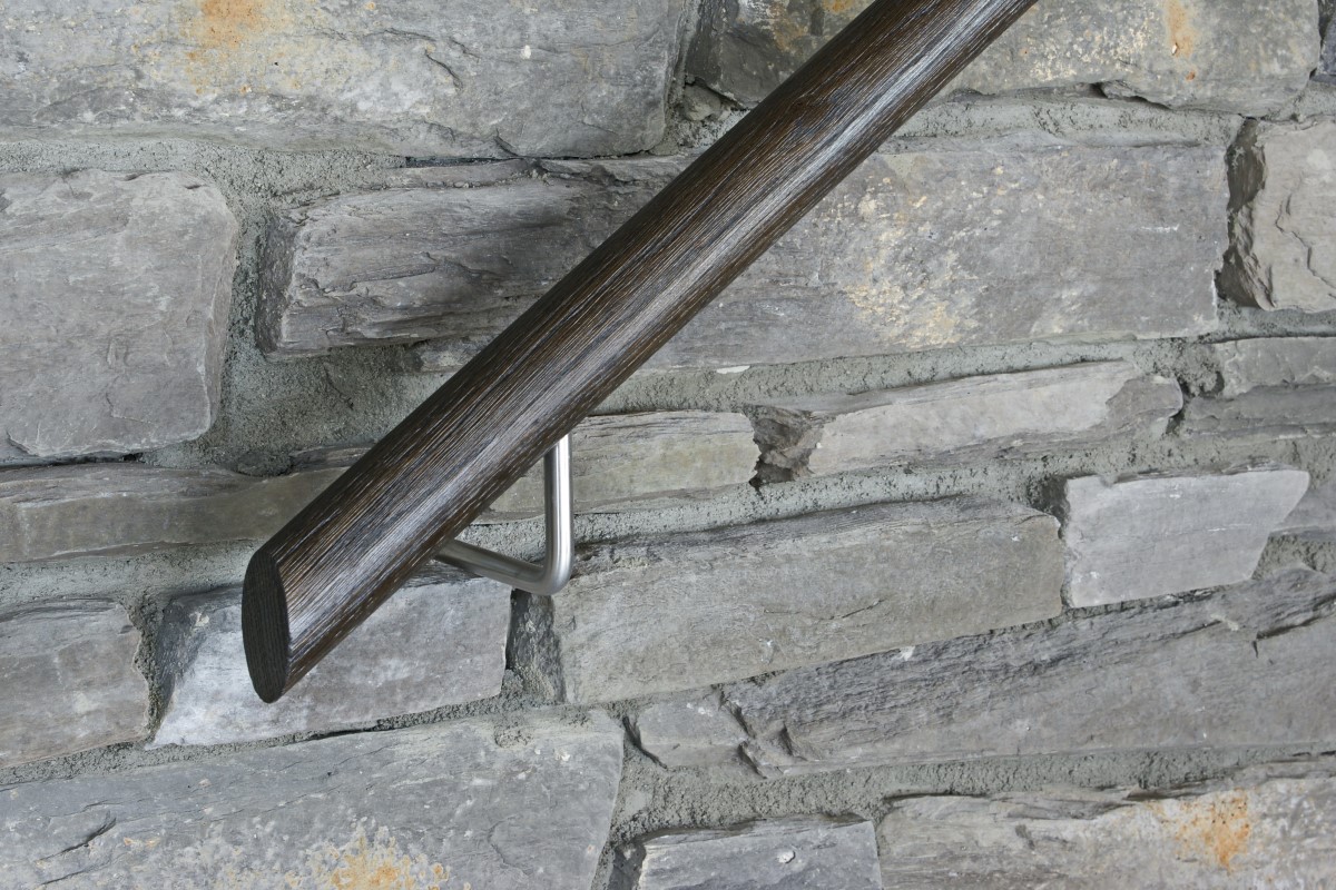 Hollmtreppe 14 -Holzhandlauf aus Eiche geölt, Natursteinmauerwerk