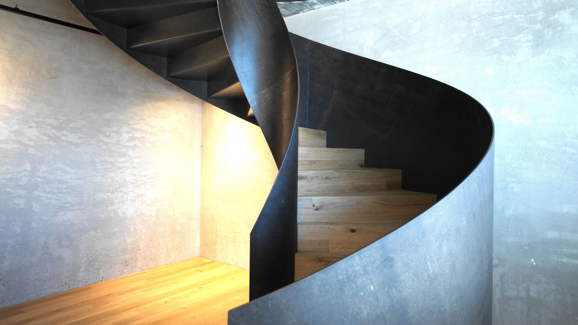 | Treppenstufen | Faltwerk aus Stahlblech mit Eichenparkett belegt |
