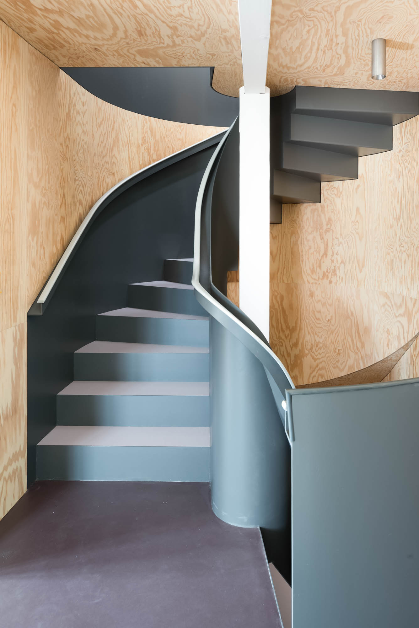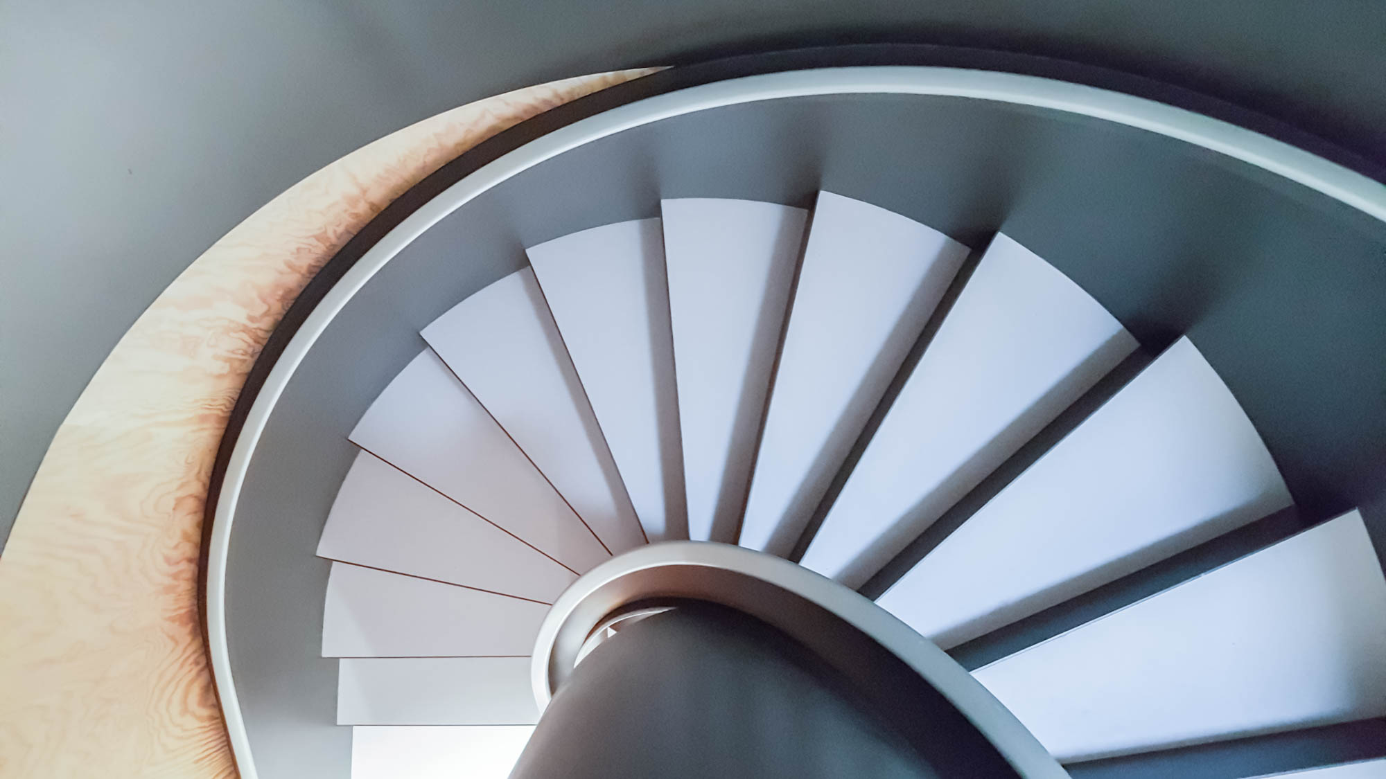 Unsere Leistungen Zweigeschossige Vollblechtreppe mit Rücklaufgeländer