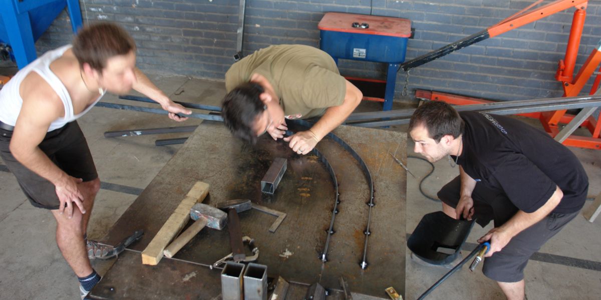 Mit vereinten Kräften werden die Bogen für den Park der Tore hergestellt.