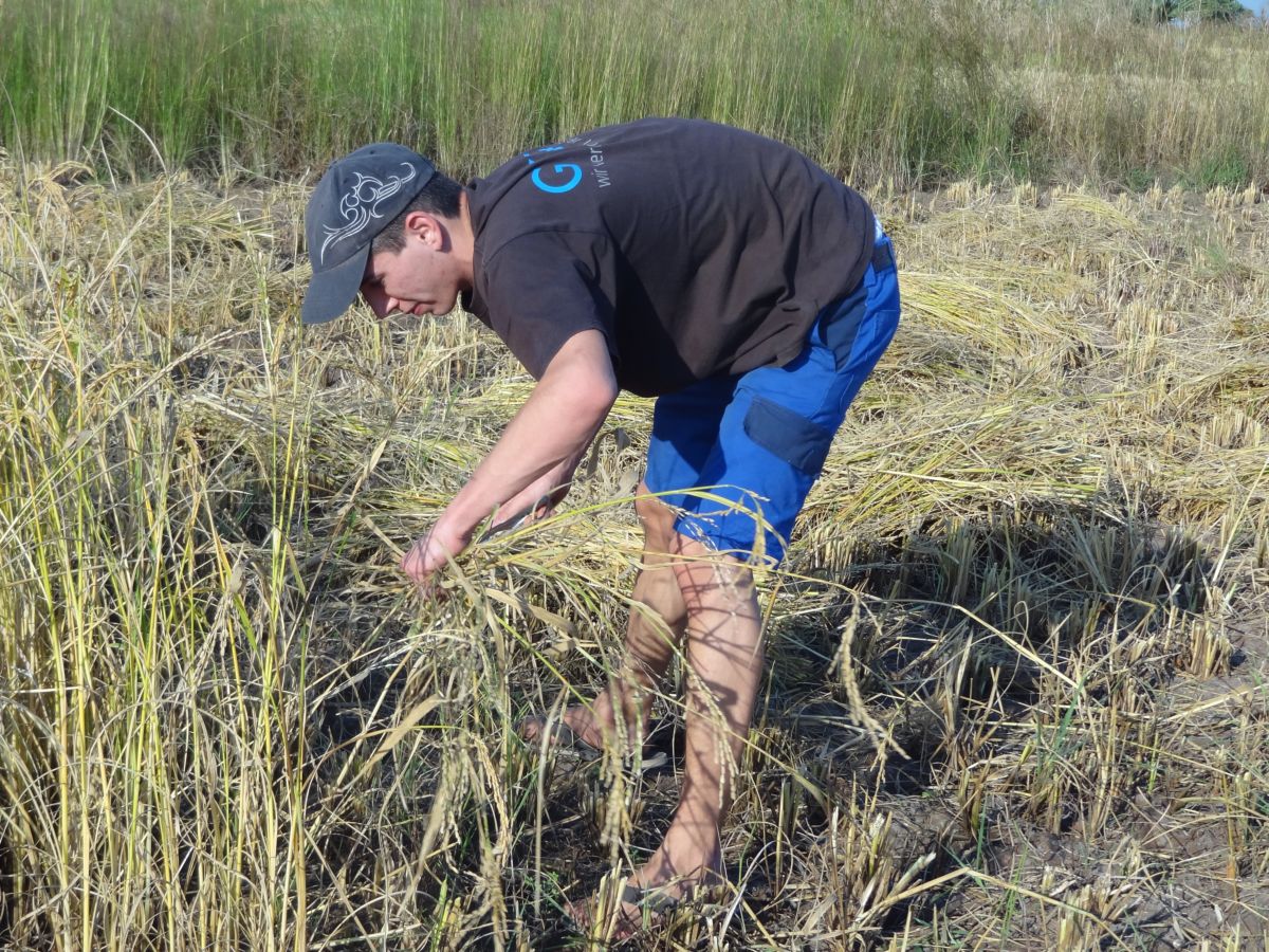 Es war gerade Reisernte, und Mathias an mit angepackt.