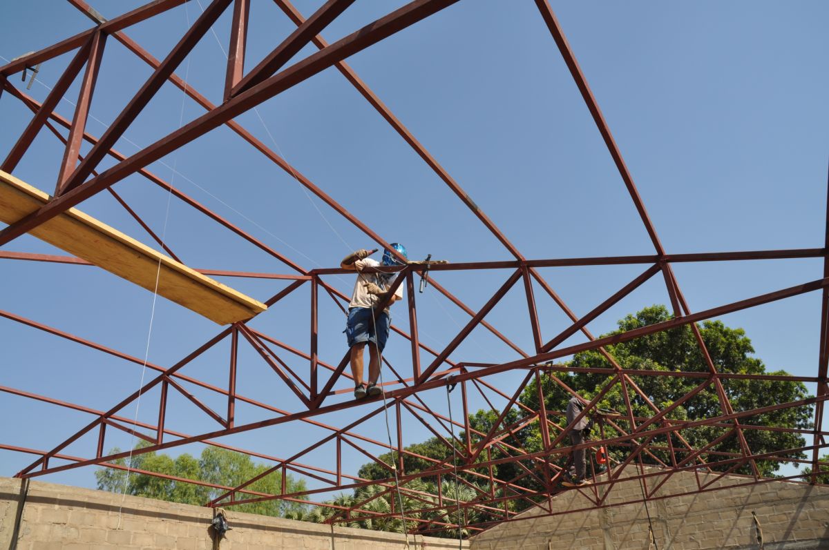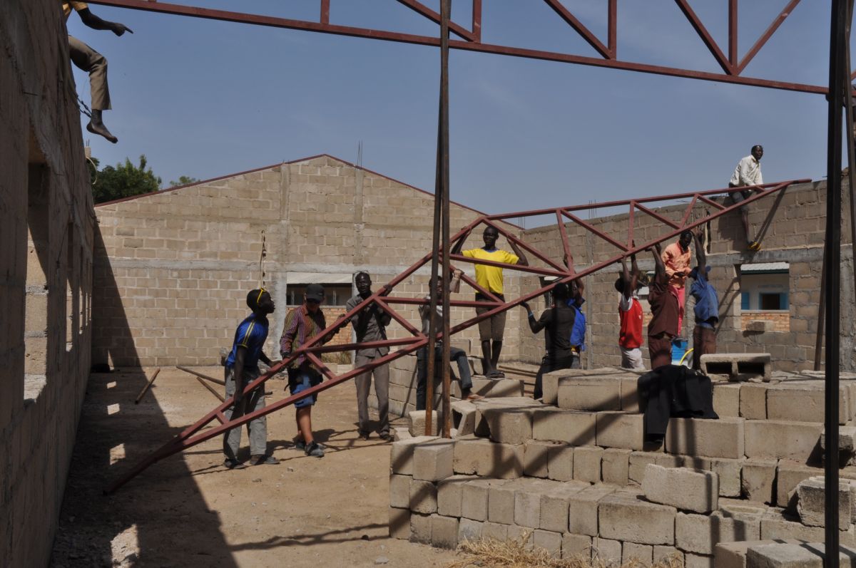 Die Binder waren von den Tschadern bereits hergestellt worden. Mein Auftrag im Tschad war es, die Binder mit Hilfe von den Leuten vom Atelier zu montieren. Es geht auch ohne Kran.