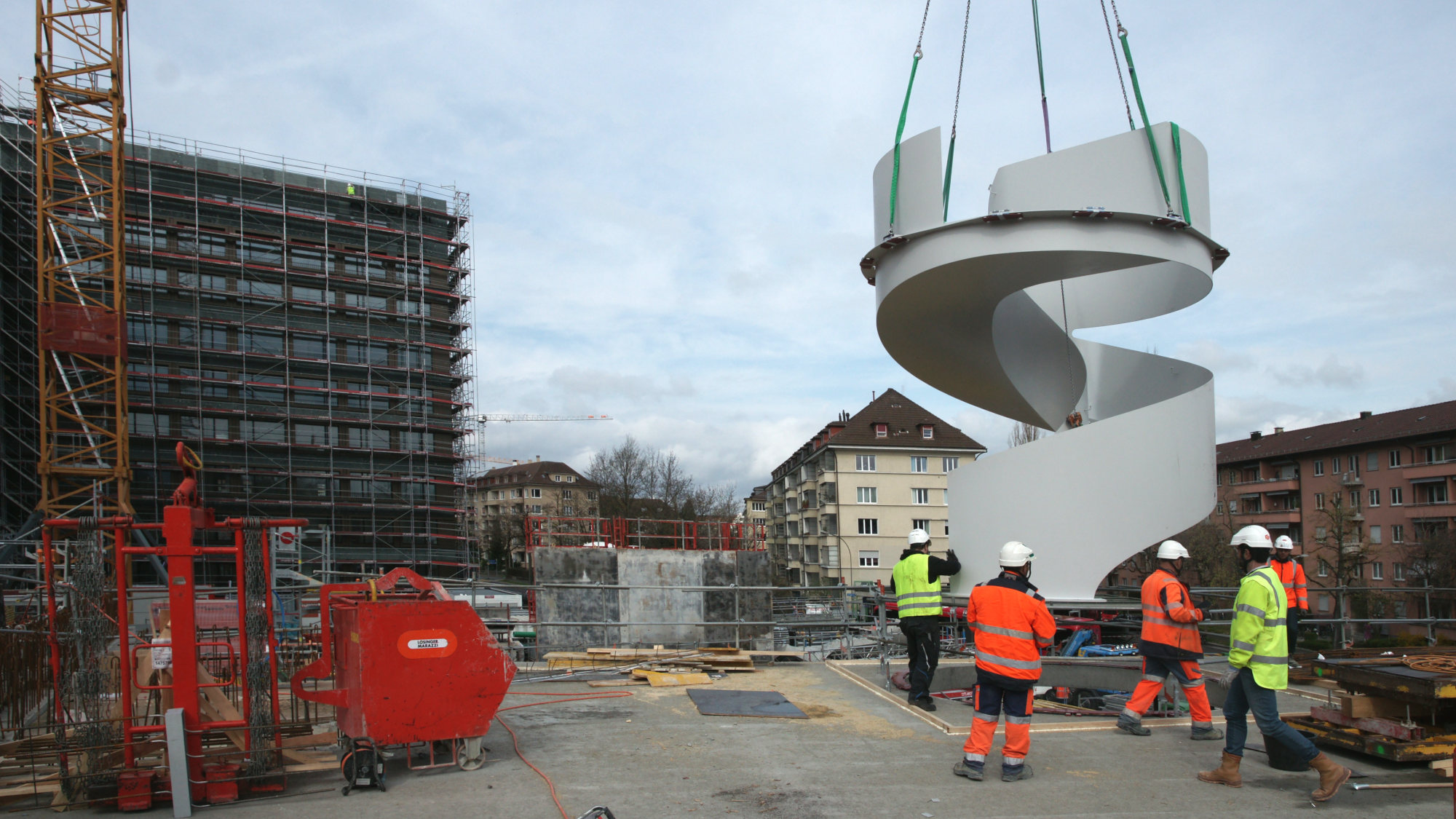 17.12.19: Im März haben wir die Wendeltreppe an einem Stück in den Rohbau eingepflanzt, Jetzt ist sie das Herzstück im neuen update Fitness Bern Schönburg.